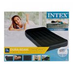 Colchón Inflable Intex Negro Fabricado en plástico resistente, cuenta con tecnología Fiber-Tech, que proporciona mayor estabilidad, firmeza y confort. Su superficie flocada mejora la suavidad al tacto. Además, dispone de una válvula 3 en 1 que permite un inflado y desinflado más rápido. Incluye una bolsa de transporte para fácil almacenamiento. Soporta hasta 136 kg y tiene dimensiones de 99 x 191 x 25 cm, con un peso total de 2.9 kg.