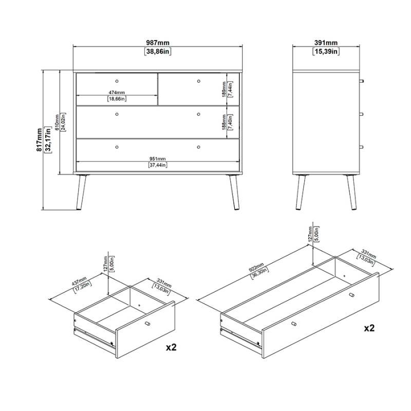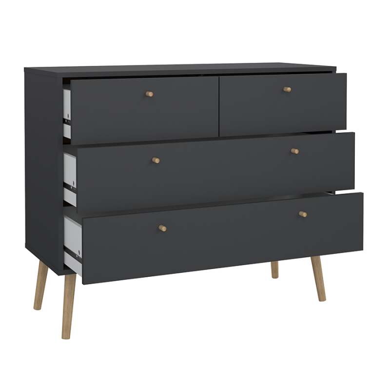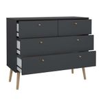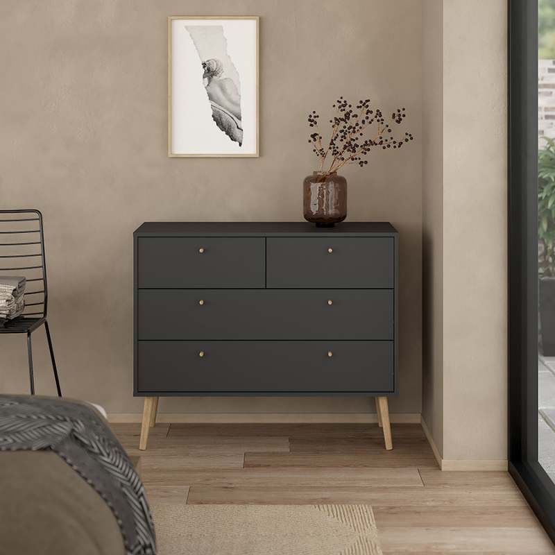 Realza tu espacio con la cómoda Bodo, que se adapta perfectamente a cualquier decoración contemporánea y minimalista, añadiendo un toque de sofisticación a tu habitación. Con cuatro cajones, ofrece un amplio espacio de almacenamiento. Ancho 98,7 centímetrosProfundidad 39,1 centímetrosAltura 81,7 centímetrosPeso 29,4 kilogramosColor Gris