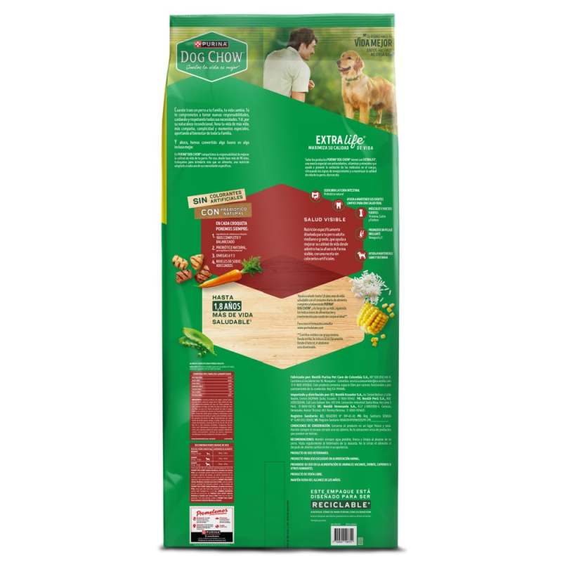 Alimento completo para perros adultos de tamaños medianos y grandes. DOG CHOW SALUD VISIBLE ADULTOS MEDIANOS Y GRANDES® ahora viene con EXTRALIFE. Una mezcla especial con antioxidantes que maximiza su calidad de vida dia tras dia. Por que una mejor vida para el, es una mejor vida para todos Juntos la vida es mejor.