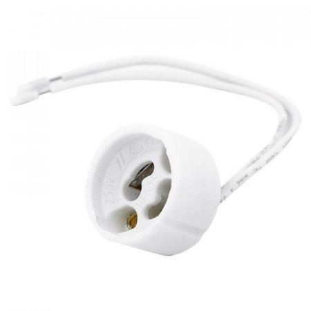 Este conector figurará como el reemplazo ideal, debido a la calidad y selección de cada uno de los materiales para su confección. Elaborado en cerámica con dos puntas de conexión para bombillas GU10, LED halógenas o dicroicas. Además, cuenta con 15 cm de cable recubierto. Su tensión es de 250 V.