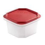 Contenedor hermético con tapa de cierre a presión; 12 x 12 x 7,5 cm y capacidad 0,60 litros, fabricados con plástico de alta calidad, libre de BPA. Asegurando una mejor conservación de los alimentos. Son aptos para su uso en microondas (hasta 100º), en congelador (-40º) y en lavavajillas. Fiambrebras de alta duración Long Life) y fabricados en España.
