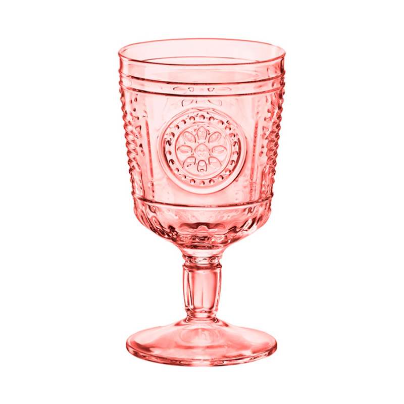 Copas 320ml. Vidrio de calidad fabricado en Italia, textura grabada, Ideal para todas las bebidas, elige un versátil juego de vasos que pueda contener prácticamente todo, jugo, agua, refrescos, limonada o incluso vino o licores. De color rosado. Su sensación romántica los hace excelentes para una noche con una persona especial o tu familia y amigos.