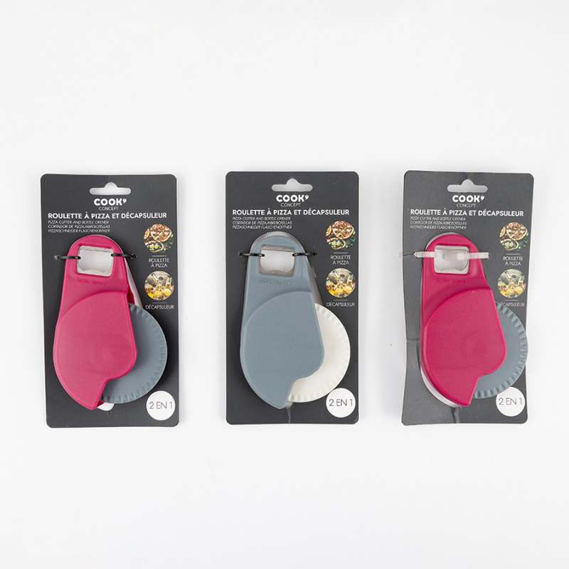 pague 2 lleve 3 en cortador para pizza + destapador cook concept Ideales para aquellos dias cuando compartes con fu familia y/o amigos y requieres de un cortador de pizza o un destapador de botellas Material: Plástico Colores: Surtidos Dimensiones: 22x4x1Cmts