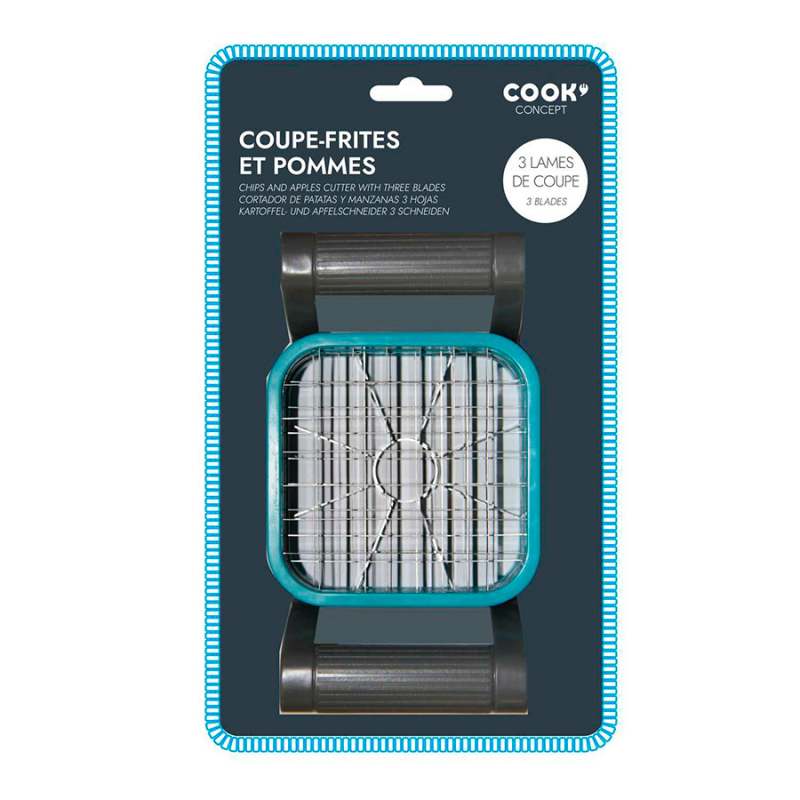 Cortador easy make 4pzas para manzana y papas. Este accesorio es ideal para los cocineros caseros. Corte fácilmente sus alimentos en forma de palitos para que sus invitados los disfruten. ¡Simplemente elija una cuchilla, coloque el alimento en el centro del dispositivo y presione firmemente para obtener alimentos calibrados! - 3 cuchillas gris amarillo verde 6.5x10.2x17.2 cm.
