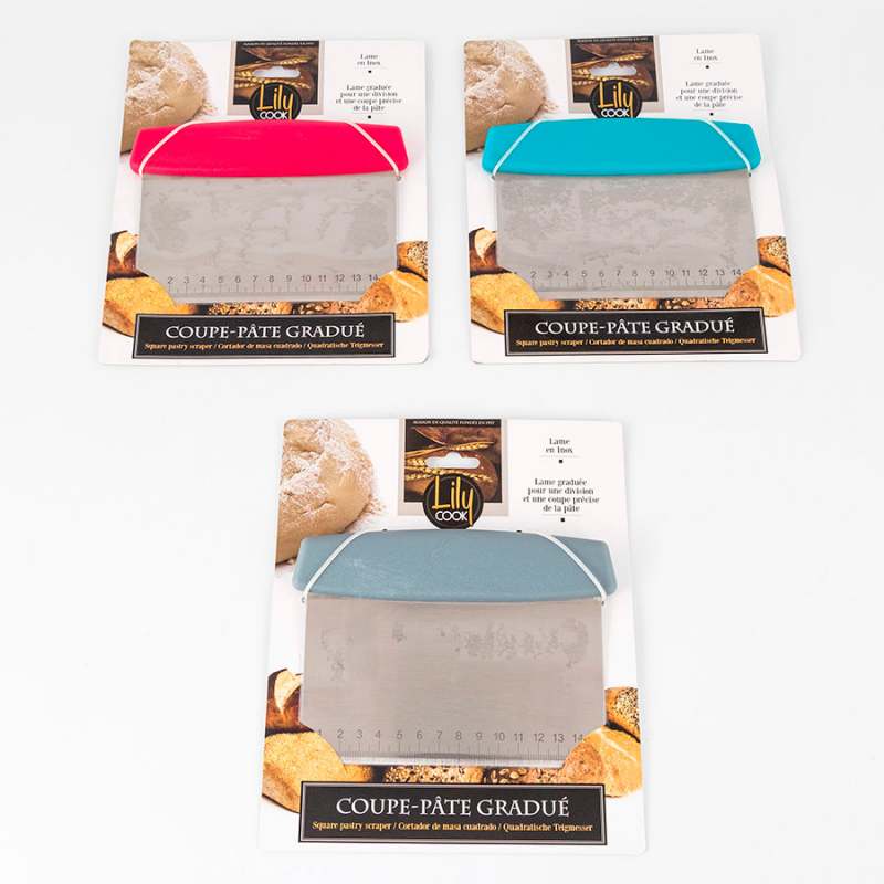 Cortador lily cook para masa cuadrado en acero inoxidable surtido kp5291. ¡Utilice este cortador de masa graduado para dividir y cortar su masa con precisión! ¡te encantará! color rosa turquesa gris 12x1.8x16.9 cm 50 % metal. Los productos marcados como 'producto surtido' pueden no ser idénticos a los que aparecen publicados en las imágenes, las imágenes son ilustrativas, al comprar un producto identificado como producto surtido, aceptas que podrás recibir un producto con características y atributos tangibles diferentes a los que aparecen en las imágenes del sitio o la publicidad, los productos surtidos mantendrán las propiedades físicas, químicas y técnicas necesarias para su funcionamiento y uso de acuerdo a su naturaleza.