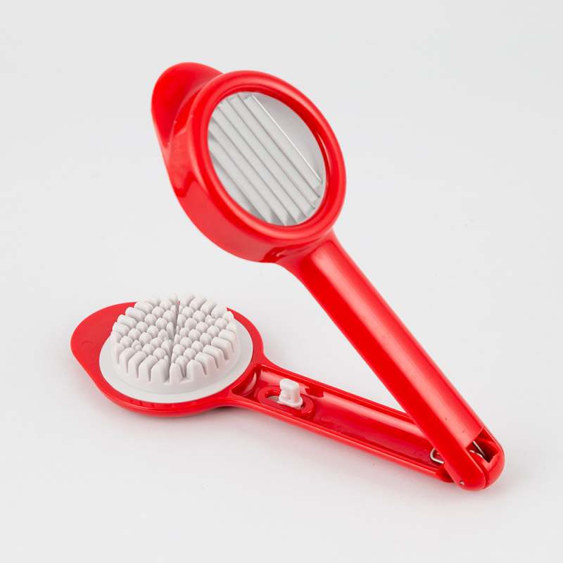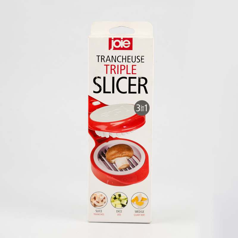 Cortador triple Joie 23 x 5 cm surtido acero inoxidable 21755. Set funcional compuesto por tres cortadores con diferentes tipos de cuchillas para obtener variados resultados de corte. Incluye un cortador que divide en seis partes triangulares, uno con cuchillas paralelas para cortes verticales uniformes y otro que genera cortes cruzados para obtener cubos pequeños. Fabricados en acero inoxidable con mango ergonómico en color verde y rojo, ideales para frutas, verduras u otros alimentos blandos, ofreciendo precisión y practicidad en la cocina. Los productos marcados como 'PRODUCTO SURTIDO' pueden no ser idénticos a los que aparecen publicados en las imágenes. Las imágenes son ilustrativas. Al comprar un producto identificado como producto surtido, aceptas que podrás recibir un producto con características y atributos tangibles diferentes a los que aparecen en las imágenes del sitio o la publicidad. Los productos surtidos mantendrán las propiedades físicas, químicas y técnicas necesarias para su funcionamiento y uso de acuerdo a su naturaleza.