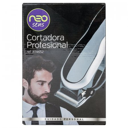Cortadora de Pelo Profesional AT4652 Neo Sens Negro, Plateado. Tiene cuchillas en carbón steel, alta precisión, forma ergonómica, incluye 4 pines guía, tiene palanca ajustable que permite personalizar las longitudes del corte, las cuchillas permanecen afiladas por más tiempo gracias a su composición, fácil de usar, ideal para llevar a cualquier lugar. Medidas: 5 x 8 x 20cms Peso: 0.7kg.