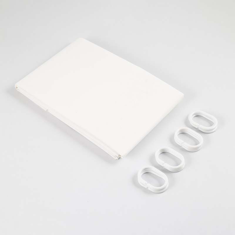 Cortina de baño en color blanco, fabricada en polietileno con medidas de 180x180 cm, ideal para agregar un toque moderno al baño.