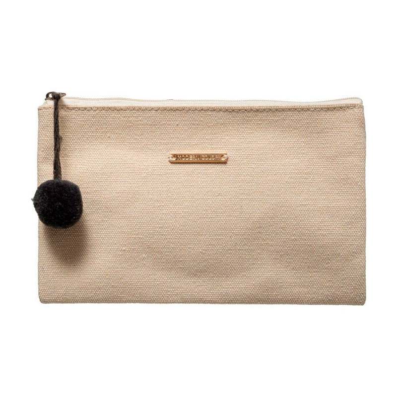 Cosmetiquera set x2. Marca: five simply smart. Medidas: 26x14x11cm. Material: poliester. Color: beige. Incluye: ponpones color negro.
