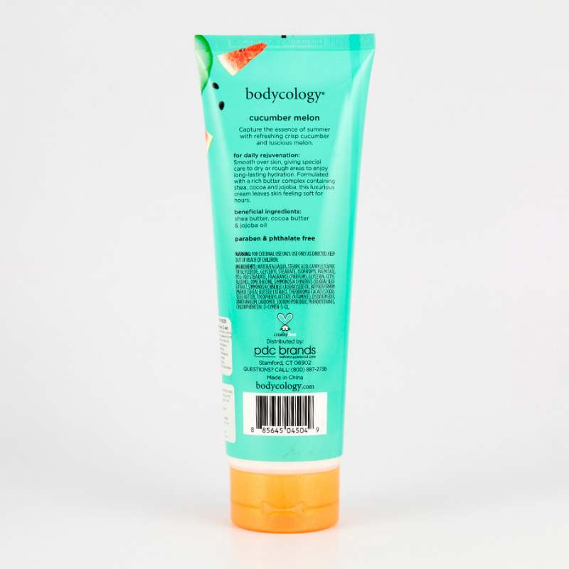 Formulada con un rico complejo de manteca que contiene manteca de karité, manteca de cacao y aceite de jojoba, esta lujosa crema deja la piel suave durante horas. Captura la esencia del verano con refrescante pepino crujiente y delicioso melón. Libre de parabenos y ftalatos. No probado en animales. Sólo para uso externo. Utilizar sólo según las indicaciones. Mantener fuera del alcance de los niños.