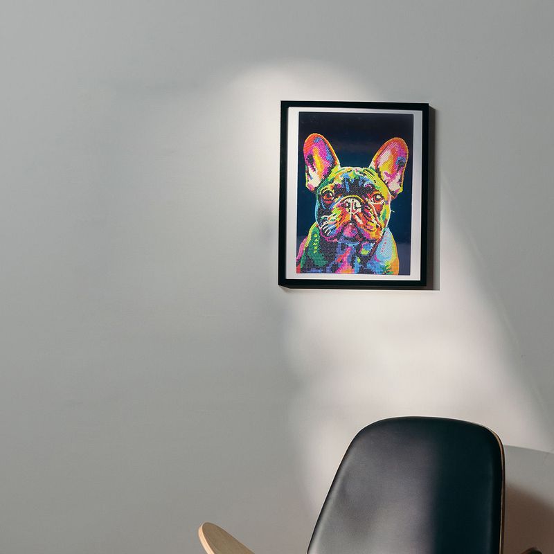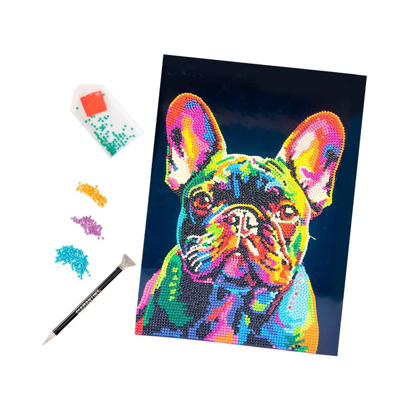 Crea una obra brillante con el Cuadro Diamantiny Bulldog Francés. Este set de arte DIY incluye un lienzo adhesivo con diseño tierno de perro, diamantes de resina y herramientas para armar fácilmente. Estimula la creatividad y mejora habilidades motrices mientras decoras espacios con un estilo original.