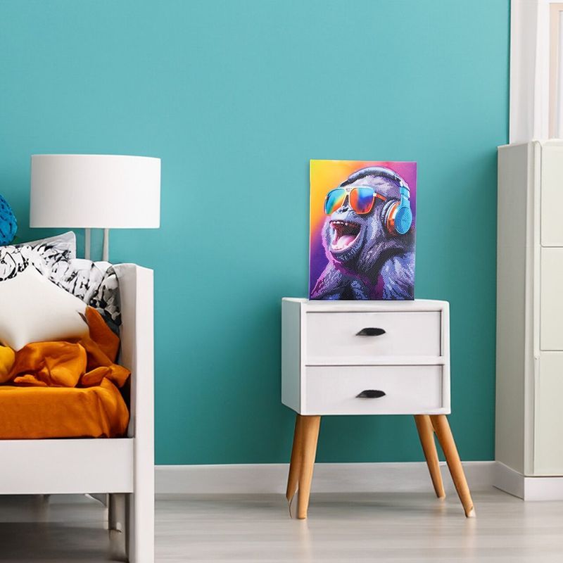 El Cuadro Diamantiny Gorila DJ es una divertida manualidad que mezcla música, color y creatividad. Ideal para niños y niñas que disfrutan del arte, este set DIY incluye un lienzo adhesivo con diseño de gorila, diamantes de resina brillantes, herramientas de aplicación y un marco decorativo. Perfecto para desarrollar la motricidad fina y decorar con un toque urbano y moderno cualquier habitación.