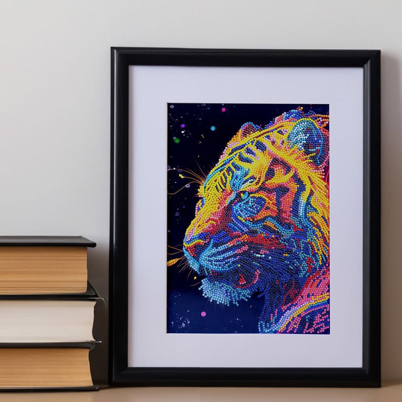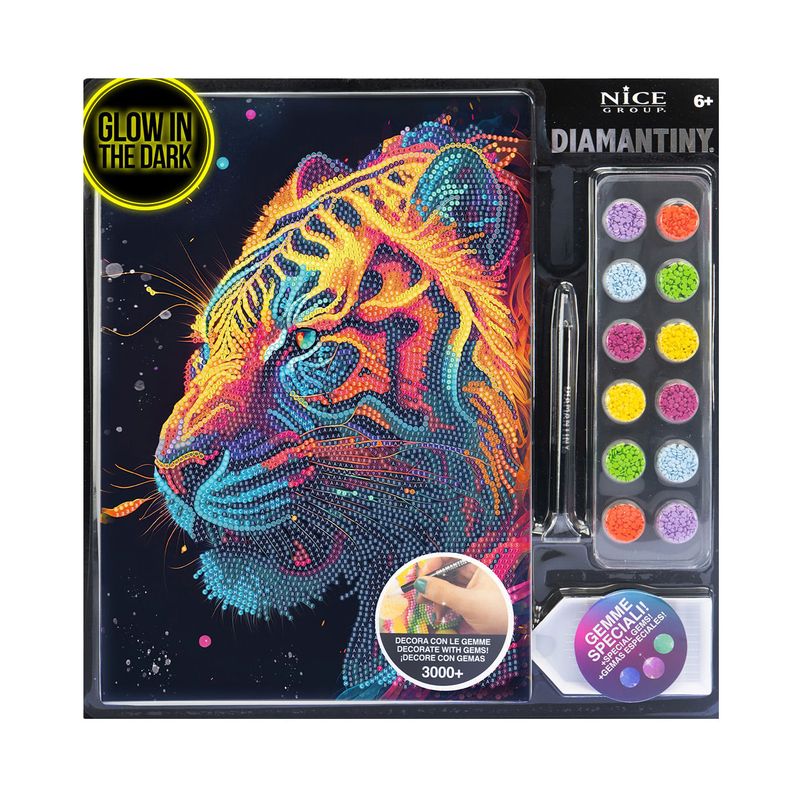Explora el mundo del arte brillante con el Cuadro Diamantiny Tigre. Este set incluye todo lo necesario para armar una imagen impactante de un tigre usando técnica de diamantes. Ideal para niños que aman los animales salvajes y la decoración creativa.
