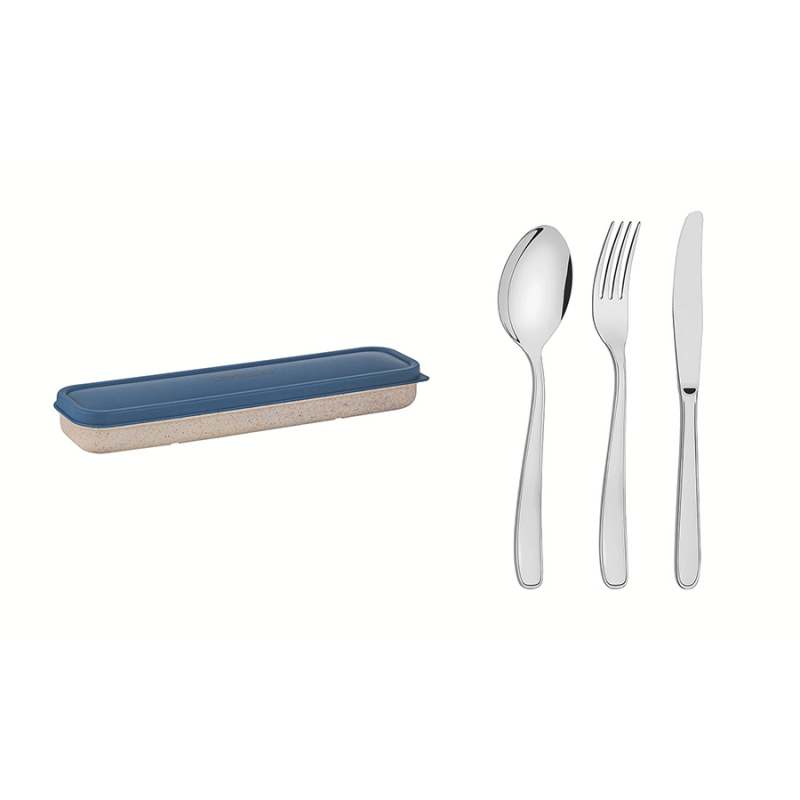 Set de Cubiertos (1 puesto) + Estuche Tramontina By Me Azul. Fabricados en acero inoxidable. Protege tus cubiertos y llévalos a todos lados en este fabuloso Estuche, el cual te permitirá transportarlos de manera cómoda y segura. Cuenta con un practico diseño. Incluye 4 piezas.