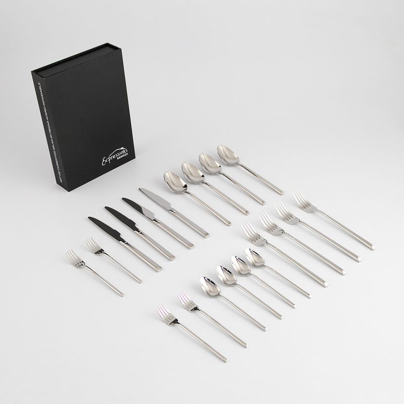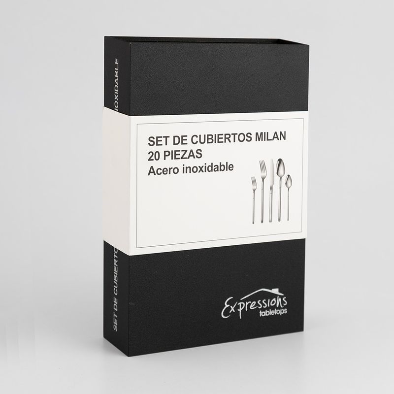 Cubiertos Expressions Milan 20 Pz Acero Inoxidable Cx es un juego de cubiertos de 20 piezas en color plateado fabricado en acero inoxidable, ideal para equipar tu mesa con utensilios resistentes y de uso diario. Este set incluye la cantidad estándar para servir a 4 personas (generalmente cuchillos, tenedores, cucharas y cubiertos para postre), con diseño clásico y acabado pulido que aporta un toque elegante a cualquier comida. Los cubiertos de estilo Milan suelen estar elaborados en acero inoxidable que ofrece durabilidad, resistencia a la corrosión y facilidad de limpieza, y son aptos para lavado en lavavajillas, lo que simplifica su mantenimiento y uso en el día a día