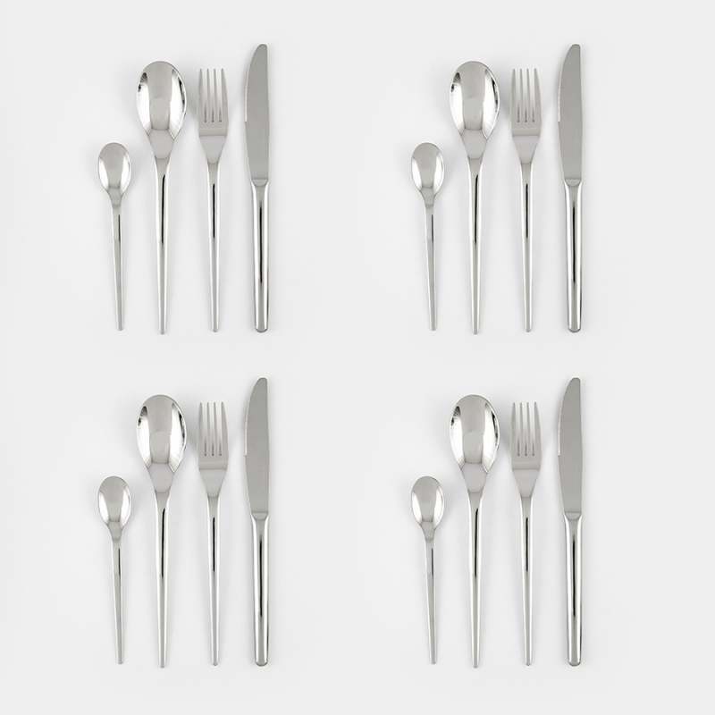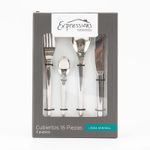 Juego de cubiertos 16 piezas Minimal. Marca: Expressions Tabletops. Material: acero inoxidable. Incluye: 4 cucharas,4 cucharas pequeñas, 4 tenedores y 4 cuchillos. Con su diseño moderno hará brillar tu mesa en esa gran ocasión especial. La marca se caracteriza por su calidad y seguridad, productos que suplirán tus necesidades en un instante.