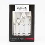 Juego de cubiertos 16 piezas Modern. Marca: Expressions Tabletops. Material: acero inoxidable. Incluye: 4 cucharas,4 cucharas pequeñas, 4 tenedores y 4 cuchillos. Con su diseño moderno hará brillar tu mesa en esa gran ocasión especial. La marca se caracteriza por su calidad y seguridad, productos que suplirán tus necesidades en un instante.