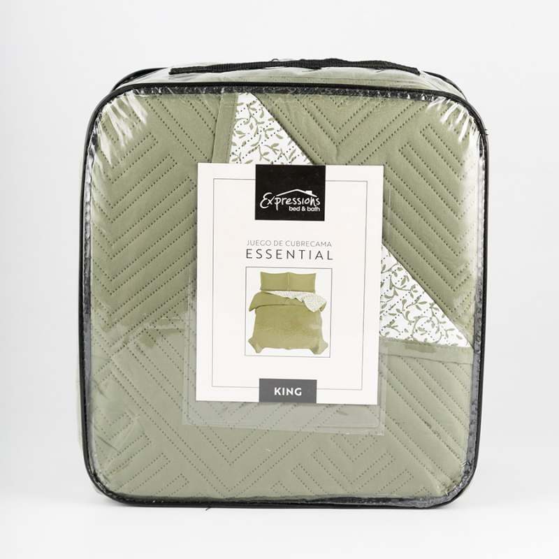 Cubre Cama Expressions Basic King de 260x250 cm, confeccionado en 100% poliéster color Verde, ideal para aportar un estilo elegante y moderno al dormitorio. Su tejido es ligero, resistente y de fácil cuidado, conservando su apariencia por más tiempo. Incluye dos fundas de almohada de 49x89 cm