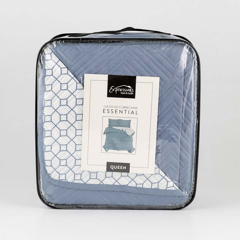 Cubre Cama Expressions Basic Queen de 200x240 cm, confeccionado en 100% poliéster color Azul, ideal para brindar un toque elegante, limpio y moderno al dormitorio. Su tejido es ligero, resistente y de fácil mantenimiento, manteniendo su forma y color por más tiempo. Incluye dos fundas de almohada de 49x69 cm.