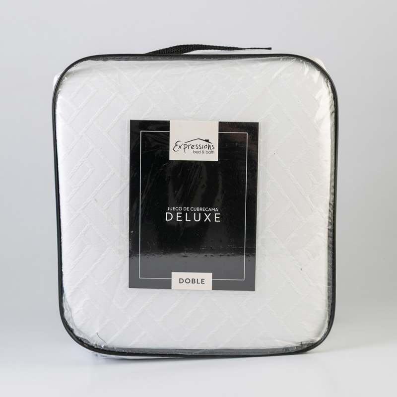 Cubrecama Expressions Doble 190x140 cm. Producto elaborado en 100% poliéster, color blanco, diseñado para brindar comodidad y estilo a tu dormitorio. Incluye 2 fundas de almohada de 49 cm x 69 cm cada una. Perfecto para camas dobles combina funcionalidad y elegancia.