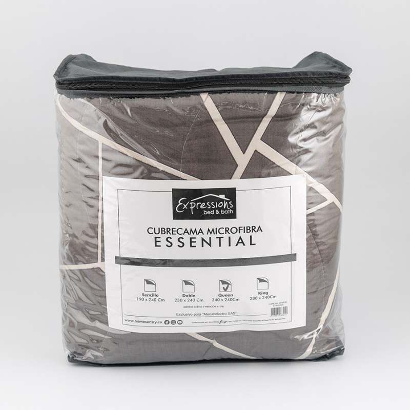 cubrecama Expressions Geometric Queen es un accesorio decorativo y funcional para tu habitación. Mide 240 cm de ancho y 240 cm de largo, ideal para camas queen. Está fabricada en microfibra, lo que la hace suave y duradera. Incluye dos fundas para almohadas.