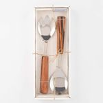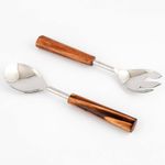 Cucharas 2pz para servir. Marca: Concepts. Material: 60% Acero inoxidable y 40% madera. Color: Plateado y café. Atributos adiciones: - Apto para lavavajillas. - No apto para microondas.
