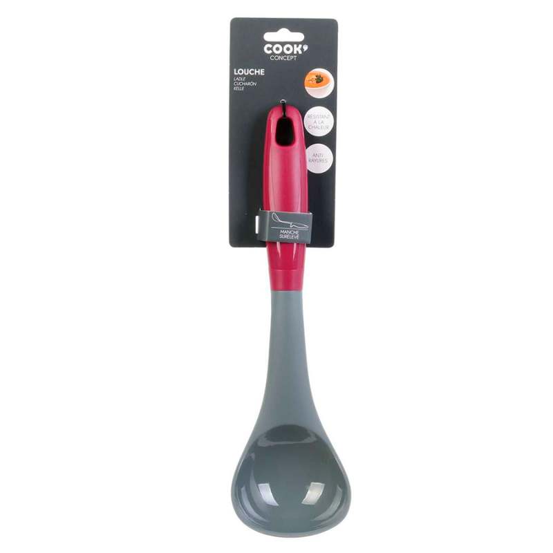 Cucharon cook concept 31 cm en nylon surtido ku6522. Cocine limpio y disfrute de un ingenioso cucharón con mango en relieve. Resistente al calor hasta 220°c y a los arañazos, te encantará color gris burdeos 31.3x7.5x8.6 cm 50% plástico. Los productos marcados como 'producto surtido' pueden no ser idénticos a los que aparecen publicados en las imágenes, las imágenes son ilustrativas, al comprar un producto identificado como producto surtido, aceptas que podrás recibir un producto con características y atributos tangibles diferentes a los que aparecen en las imágenes del sitio o la publicidad, los productos surtidos mantendrán las propiedades físicas, químicas y técnicas necesarias para su funcionamiento y uso de acuerdo a su naturaleza.