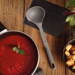 Cucharón de silicona resistente a temperaturas de hasta 210 °C. Cuenta con un orificio en el mango para colgarlo en la cocina. Ideal para usar en sartenes con revestimiento antiadherente y cerámico, ya que no daña el producto. Utensilio de silicona de alta calidad, ideal y seguro para uso alimentario, que cumple con las normativas ANVISA y FDA. Apto para lavavajillas, lo que facilita tu día a día.