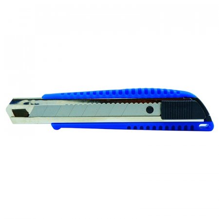 Cuchilla de utilidad antideslizante con diseño ergonómico, cuerpo interno de metal y terno de ABS de alto impacto.