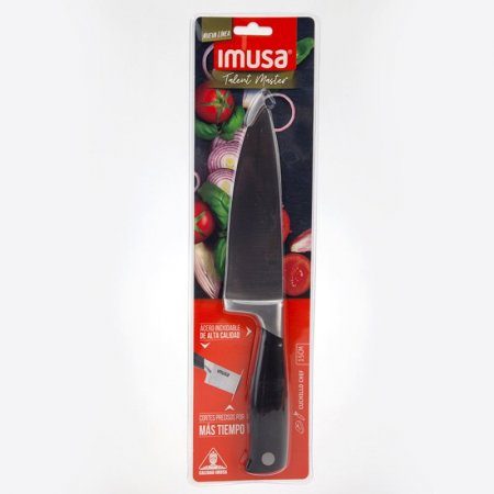 El Cuchillo Chef De 15Cm Es Ideal Para Trozos Grandes De Carnes Crudas, Frutas Y Verduras. Su Cuchilla En Acero Inoxidable De Alta Calidad, Permite Cortes Finos Y Precisos, Por Más Tiempo, • Color: Negro • Cuchilla En Acero Inoxidable De Alta Calidad 20Cm • Alto: 29Cm • Ancho: 4.5Cm • Largo: 18Cm