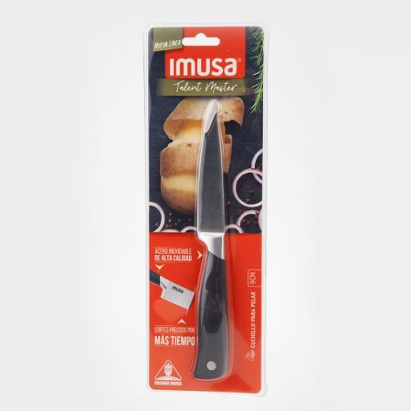 El Cuchillo Pelador De 9Cm, Logrará Que Tus Frutas Y Verduras Queden Con El Mejor Corte. Su Cuchilla En Acero Inoxidable De Alta Calidad, Permite Cortes Finos Y Precisos, Por Más Tiempo, • Color: Negro • Cuchilla En Acero Inoxidable De Alta Calidad 9Cm • Alto: 12Cm • Ancho: 2.1Cm • Largo: 9Cm
