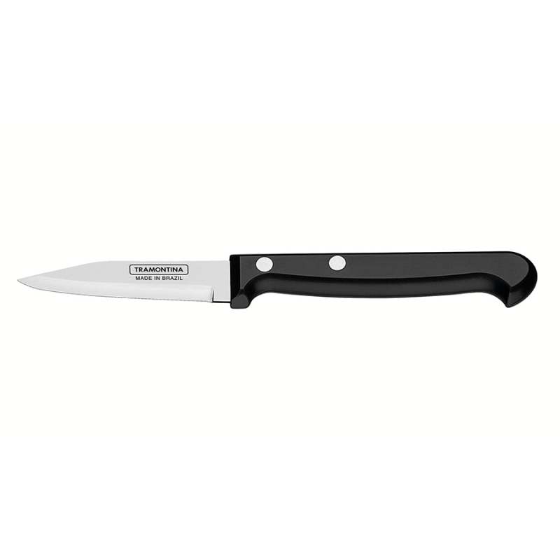 El Cuchillo para Verduras y Frutas Tramontina Ultracorte con hoja de acero inoxidable de 3 pulgadas y mango de polipropileno negro de la línea Ultracorte es una pieza esencial en su cocina. Diseñado para cortes pequeños y delicados de verduras y frutas, cubre tus necesidades en diferentes recetas. La hoja de 3 pulgadas está hecha de acero inoxidable y recibe un tratamiento térmico que le da más durabilidad al filo. El mango de polipropileno negro es resistente y cuenta con protección antimicrobiana que inhibe el crecimiento de bacterias y hongos. Es una pieza que se puede llevar al lavavajillas.