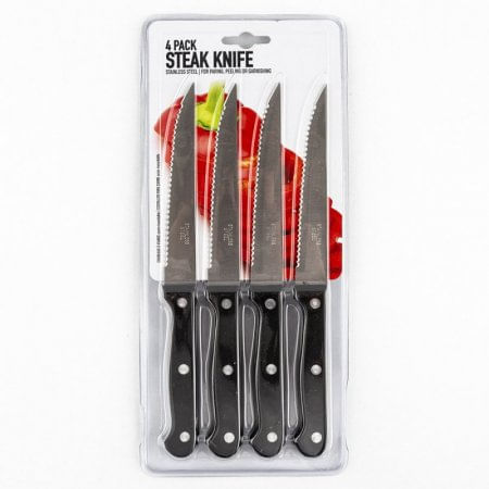 Juego De 4 Cuchillos Para Carne De Acero Inoxidable Con Bordes Dentados Afilados. Fácil De Limpiar, Ligeros Y Aptos Para Lava Vajillas. Mango En Plástico Resistente. Longitud De La Hoja 11,3 Cm