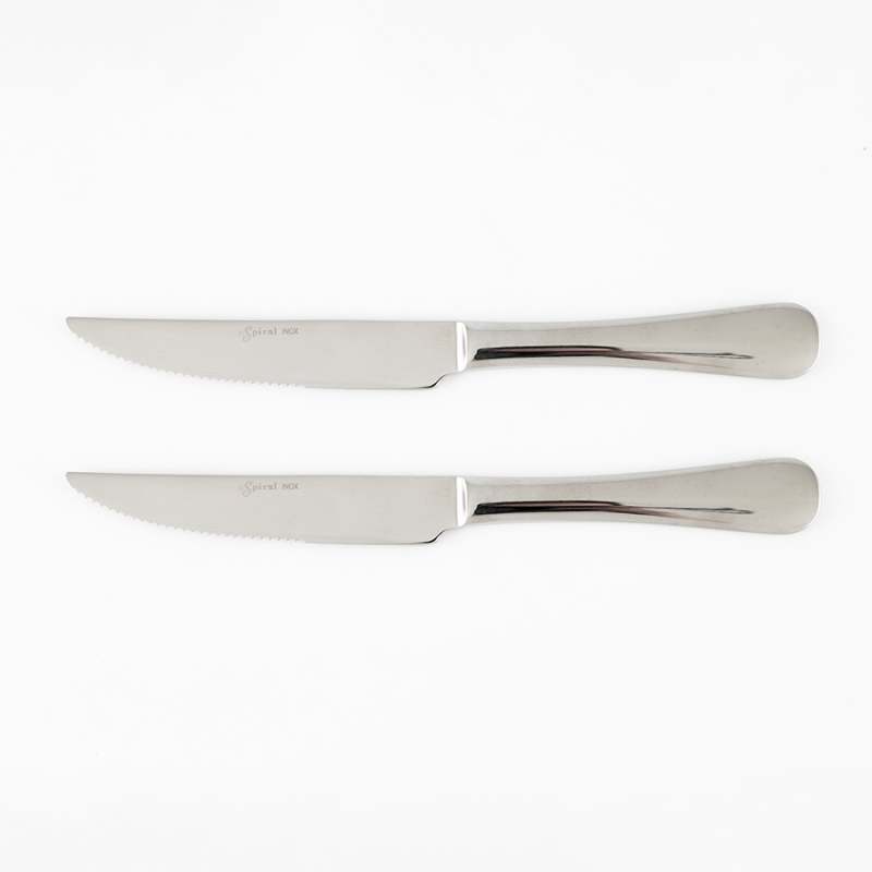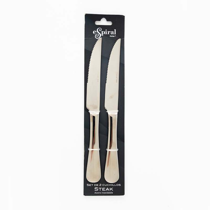 Beneficios: Corte eficiente y preciso gracias a su filo de sierra. Fabricados en acero inoxidable, son resistentes a la corrosión y duraderos. Diseño elegante y cómodo de usar, con mango ergonómico y apto para lavavajillas. Características: Incluye 2 cuchillos de acero inoxidable con filo de sierra, ideales para carnes. Mango ergonómico y acabado brillante que aportan estilo y funcionalidad a la mesa.
