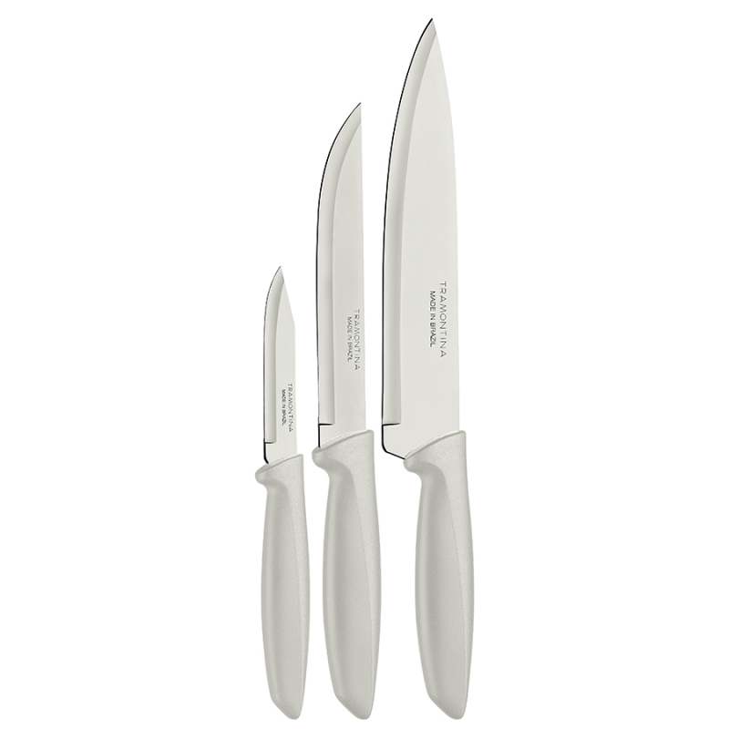 La Línea Plenus va del desayuno a la cena, de la parrillada a la tabla de quesos. Las hojas de acero inoxidable y los mangos de polipropileno blanco son resistentes y cómodos de manejar. Pueden ir en el lavavajillas. Este .Juego de cuchillos 3 piezas contiene 1 cuchillo Legumbres de 3 pulgadas de hoja , un cuchillo de cocina de 6 pulgadas y un cuchillo de cocina de 8 pulgadas.