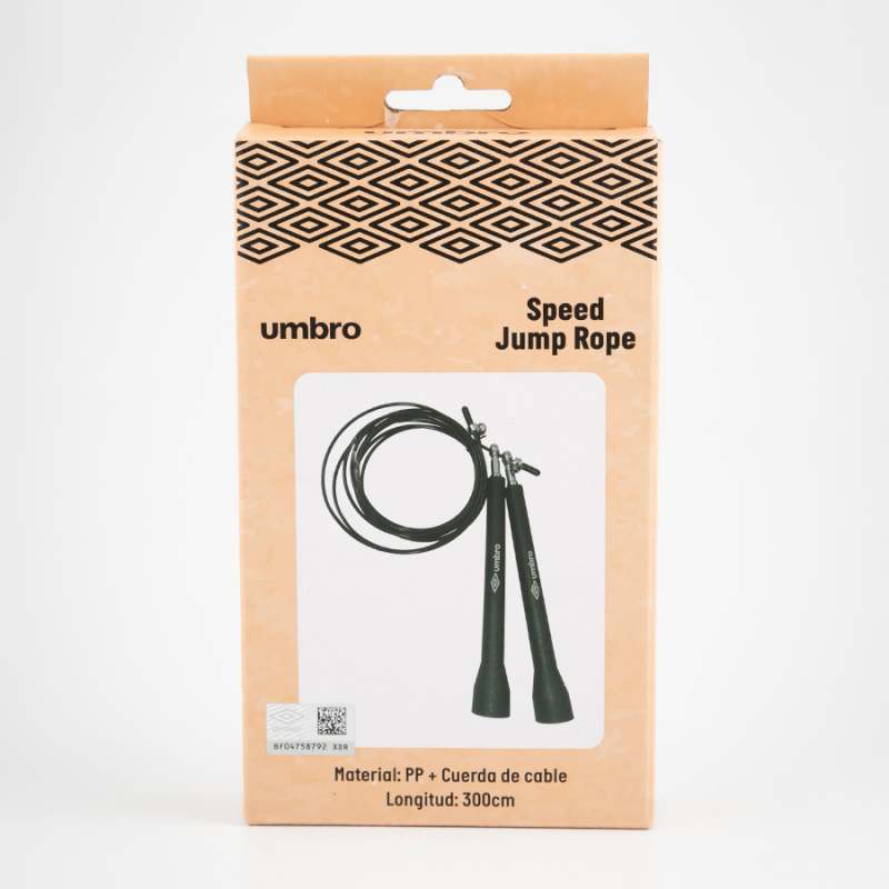 La Cuerda de Salto Umbro 300 cm está fabricada en polipropileno de alta calidad, lo que la hace resistente y duradera. Con una longitud de 300 cm, es ideal para entrenamientos de cardio, mejora de la coordinación y agilidad. Su color negro y diseño ergonómico la hacen cómoda y fácil de usar.
