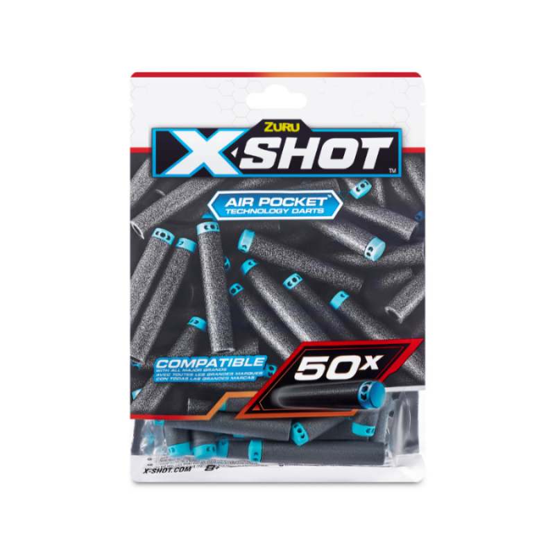 Nunca Te Quedes Sin Acción ¡Con 50 Dardos, Estarás Abastecido Y Preparado Para Cualquier Batalla Con Blasters! ¡Observa A Tus Oponentes Salir Corriendo Incluso Antes De Que Hayas Comenzado! Tecnología Air Pocket ¡Incluye Dardos Con Tecnología Air Pocket Para Una Explosión Más Lejos, Más Rápida Y Más Precisa! Dardos Compatibles Los Dardos X-Shot Excel Son Compatibles Con La Mayoría De Las Principales Marcas De Lanzadores. Almacenamiento Viene En Una Bolsa Con Cierre Para Un Fácil Almacenamiento Una Vez Terminada La Batalla. Incluye 50 Dardos De Espuma Con Tecnología X-Shot Excel Air Pocket