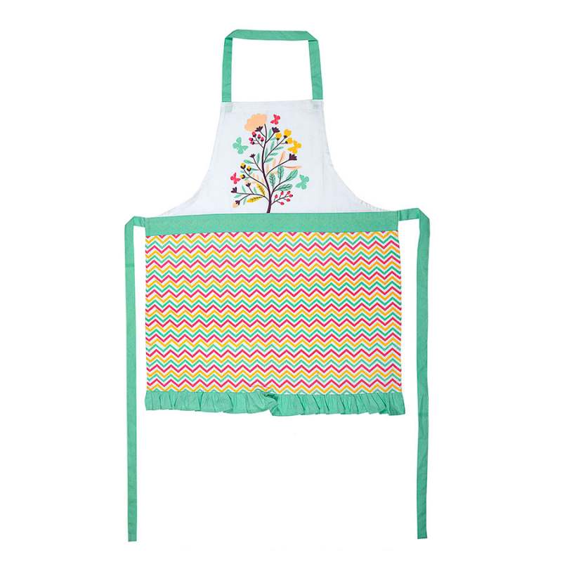 Juego de 4 piezas de cocina madre e hija, elaborado 100% poliéster. Estampado de Flower. Dimensiones: Delantal adulto:70x80cm, delantal infantil: 40x65cm, gorro de chef: 25 cm diametro y guante de cocina: 13x22cm.