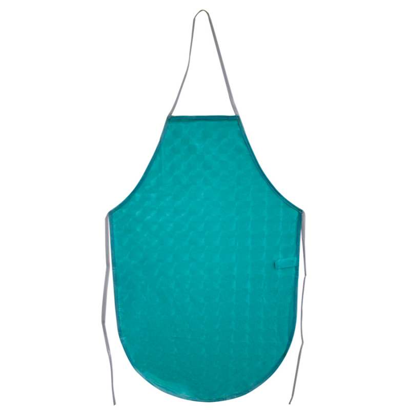 Textura lisa. Fácil de limpiar. Cordón en el cuello y cintura. Bolsillo frontal.