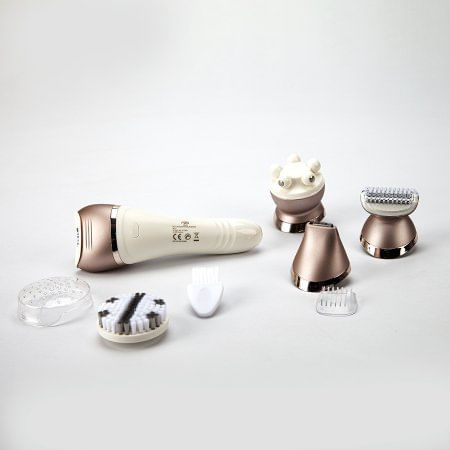 Su diseño ligero y ergonómico permite adaptarse a las curvas del cuerpo. Sus cabezales dan una opción completa para las mujeres que quieren tener un rostro y cuerpo radiante. Tiene 2 velocidades.Es recargable/ inalámbrica.Carga rápida en dos horas.Es lavable (funciona en húmedo y seco).Tiene batería de litio.Incluye: cabezal depilador, cabezal de bikini, cabezal de afeitado, cepillo corporal y cabezal para masaje.Con accesorios adicionales: adaptador, cubiertas de protección y cepillo de limpieza