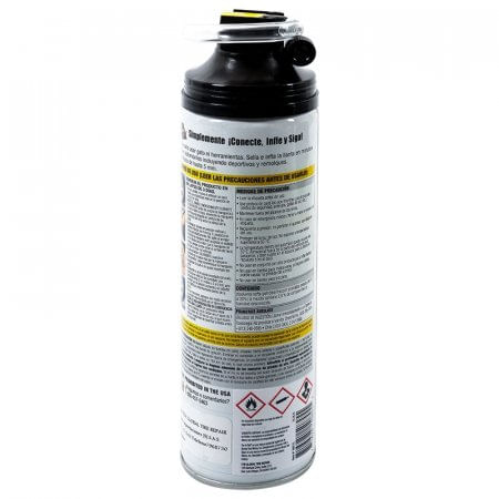Inflador y sellador de llantas, Elaborado con disolvente nafta, No es necesario usar gato ni herramientas sella e infla la llanta en minutos, Para uso en automóviles deportivos y remolques, Sella pinchazos de hasta 5 mm, No daña los sensores de llanta, Incluye manguera, Contenido 453gr.