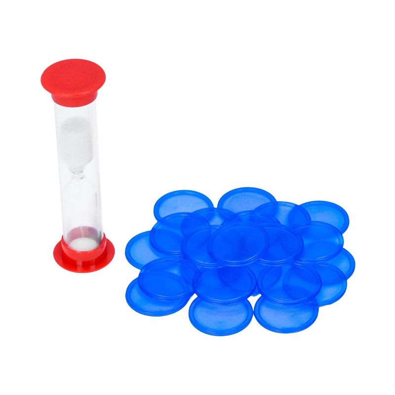 Desafio de dibujo y adivinanza usando gafas con soporte para marcador: dibuja con la nariz mientras tu equipo intenta adivinar. Incluye pizarra, tarjetas, marcadores y reloj de arena. Fomenta creatividad, coordinacion y trabajo en equipo.