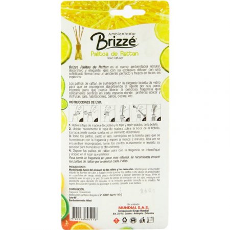 Ambientador natural, decorativo y elegante. Exclusivo difusor. Aroma a frescura cítrica. Dura mas de 45 días. Los palitos de rattan se sumergen en la elegante botella de vidrio para que se impregnen absorbiendo el liquido por sus poros internos. Ideal para salas, habitaciones, baños, cocina, etc. Contiene 60ml.