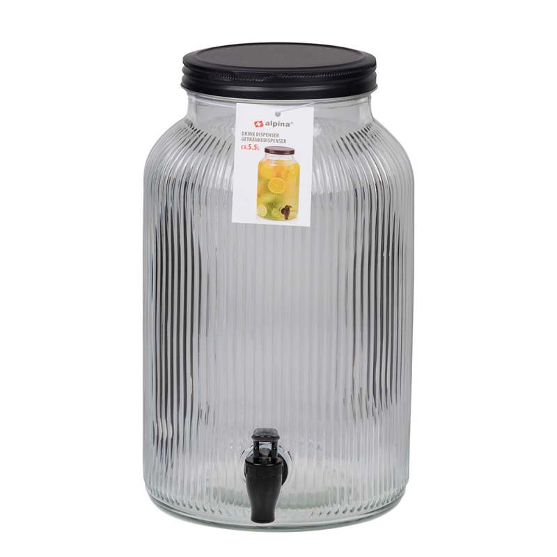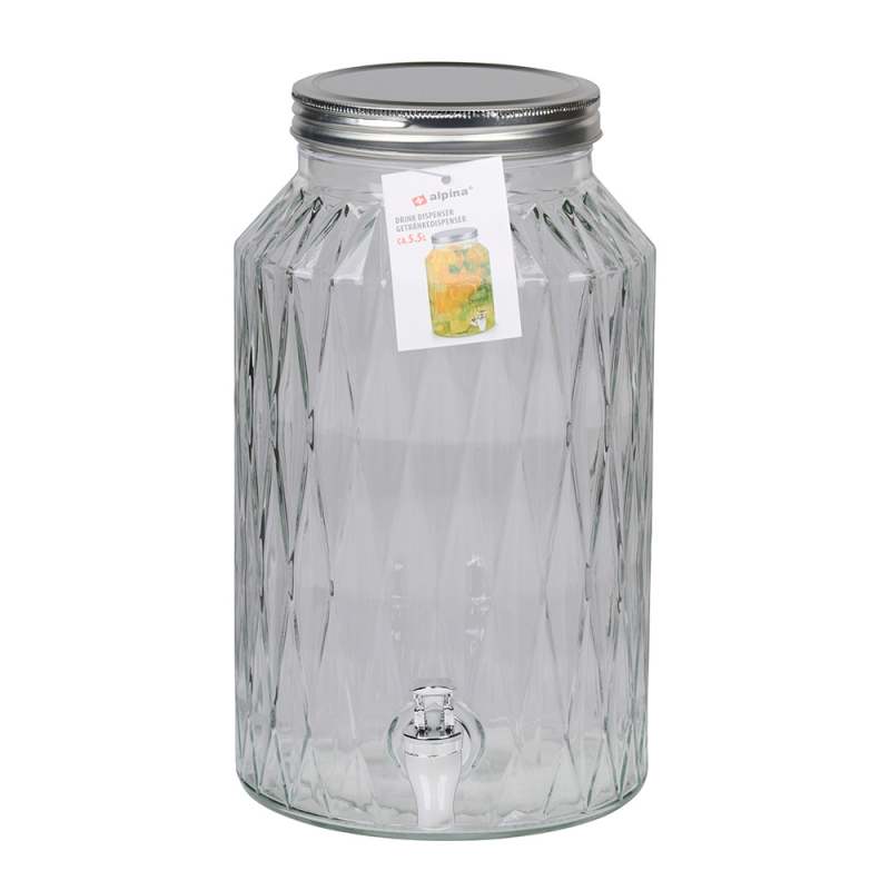Dispensador Alpina Transparente De 5.000 Ml / 5.5 L. Fabricado En Vidrio Con Diseño Surtido. Dimensiones: 18.3 X 18.3 X 30.5 Cm. Peso: 2.5 Kg. Tapa De Rosca En Metal (Color Plateado O Negro) Y Grifo Giratorio Del Mismo Color. Ideal Para Servir Zumos, Agua, Cócteles, Jugos, Ponches O Bebidas Frías. Permite Añadir Frutas, Menta O Cubos De Hielo Fácilmente. Su Diseño Transparente Permite Visualizar El Contenido, Siendo Perfecto Para Celebraciones, Reuniones O Eventos Al Aire Libre. Los Productos Marcados Como “Producto Surtido” Pueden No Ser Idénticos A Los Que Aparecen Publicados En Las Imágenes. Las Imágenes Son Ilustrativas. Al Comprar Un Producto Identificado Como Producto Surtido, Aceptas Que Podrás Recibir Un Producto Con Características Y Atributos Tangibles Diferentes A Los Que Aparecen En Las Imágenes Del Sitio O La Publicidad. Los Productos Surtidos Mantendrán Las Propiedades Físicas, Químicas Y Técnicas Necesarias Para Su Funcionamiento Y Uso De Acuerdo Con Su Naturaleza.