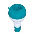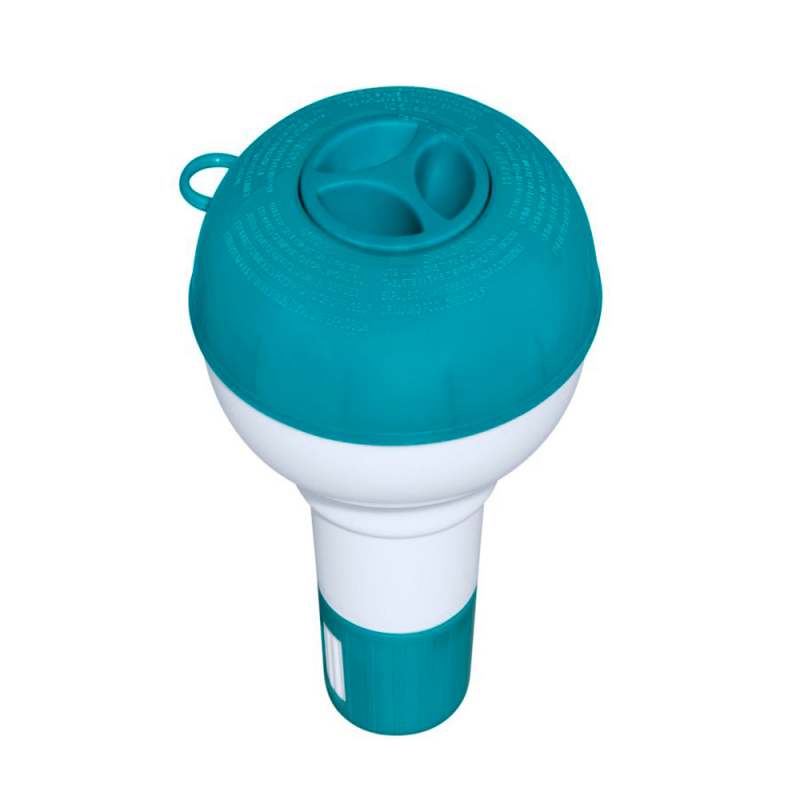 Tamaño: 12,5 cm (5 in) Dispensa pastillas de cloro o bromo de hasta 2,5 cm (1 in). Las pastillas no están incluidas Dial ajustable para controlar y liberar de forma paulatina los productos químicos Contenido: 1 dispensador de productos químicos para piscinas