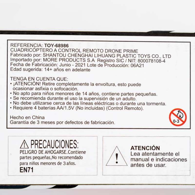 Drone prime control remoto 1 batería de li-po de 3.7v 300 mah. Edad recomendada 14 años en adelante