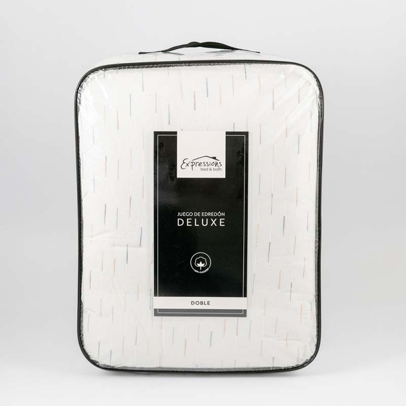 Edredón Expressions Doble 190x140 cm, fabricado en poliéster de alta resistencia y suavidad. Este edredón ofrece calidez y confort ideales para noches frescas, con un diseño moderno que aporta elegancia a cualquier habitación. Su tamaño doble es perfecto para camas medianas, y es fácil de mantener y lavar
