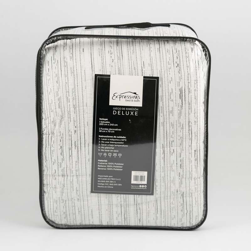 Edredón Expressions Doble 190x140 cm, fabricado en poliéster de alta resistencia y suavidad. Este edredón ofrece calidez y confort ideales para noches frescas, con un diseño moderno que aporta elegancia a cualquier habitación. Su tamaño doble es perfecto para camas medianas, y es fácil de mantener y lavar