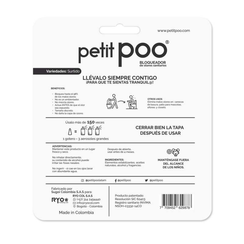 Bloqueador de olores sanitarios. • Los productos marcados como 'PRODUCTO SURTIDO' pueden no ser idénticos a los que aparecen publicados en las imágenes. Las imágenes son ilustrativas. Al comprar un producto identificado como producto surtido, aceptas que podrás recibir un producto con características y atributos tangibles diferentes a los que aparecen en las imágenes del sitio o la publicidad. Los productos surtidos mantendrán las propiedades físicas, químicas y técnicas necesarias para su funcionamiento y uso de acuerdo a su naturaleza.
