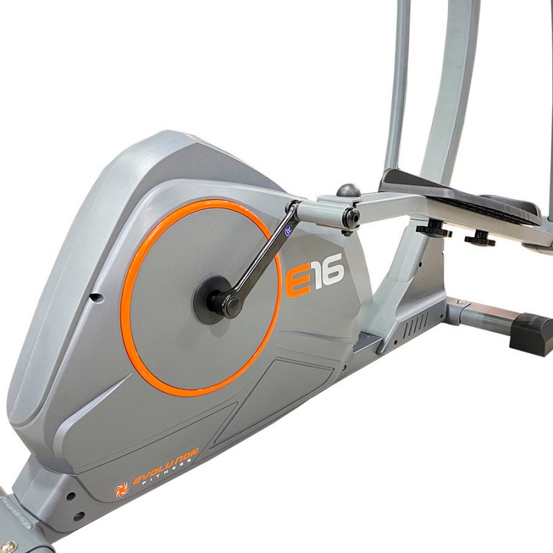 Elipitica magnetica Evolution E16, volante de 7kg, incluye 8 niveles de resistencia manual, display LCD que informa: pulso, RPM, calorías, tiempo, distancia, velocidad; incluye soporte para tablet o ipad (dispositivo no incluído); zancada de 40cm, peso máximo de usuario: 100kg.La garantia aplica 25 años sobre la estructura, 2 años en motor, 1 año en piezas electricas y de desgaste.Sevicio tecnico: Evolution Fitness Corp (dirección: av carrera 30 # 63f-53, Bogotá D.C.)Telefono: (1) 7454646Correo electronico: servicioalcliente@evolutionfitness.co Contacto: Jefe de posventas y garantias